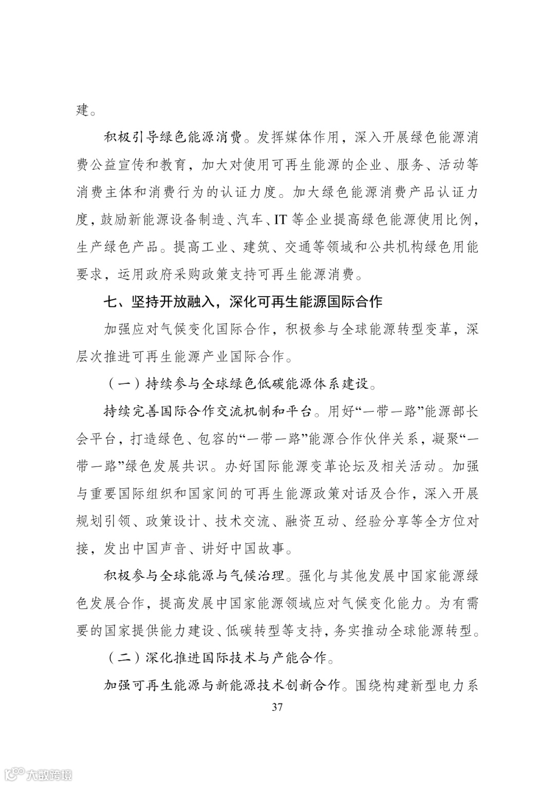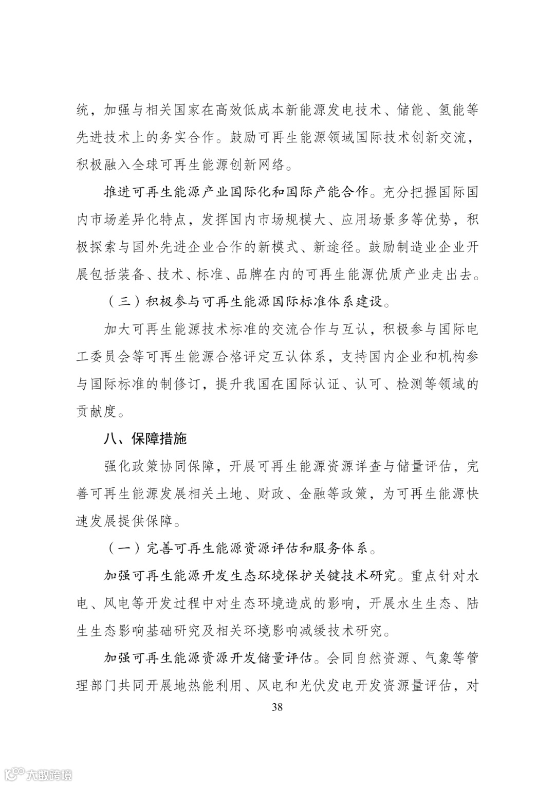 等先进技术上的务实合作。鼓励可再生能源领域国际技术创新交流,积极融入全球可再生能源创新网络。