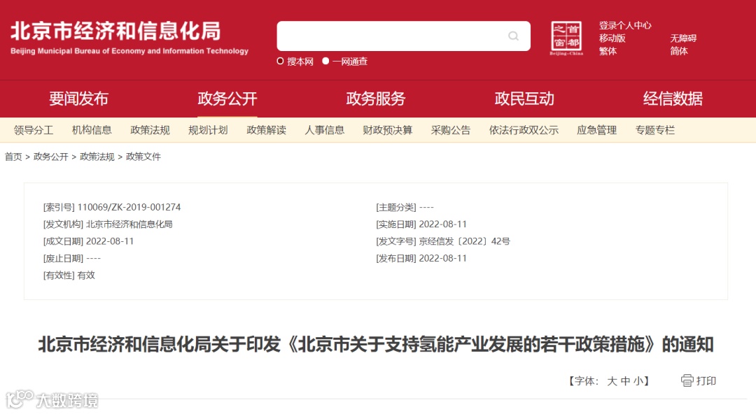 【政策】《北京市关于支持氢能产业发展的若干政策措施》正式发布!