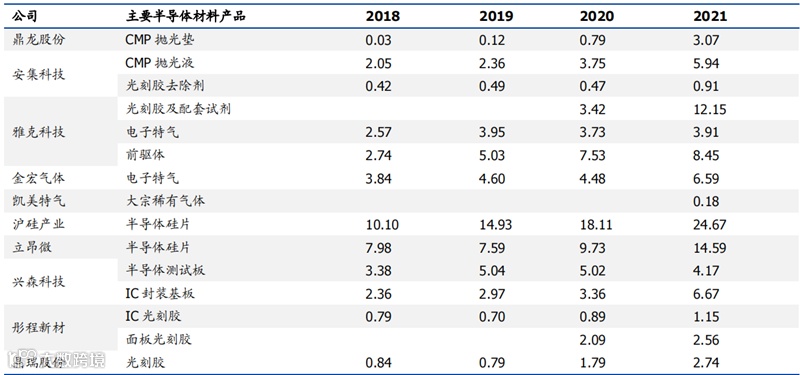▲半导体材料公司在电子材料业务领域营收情况(亿元)