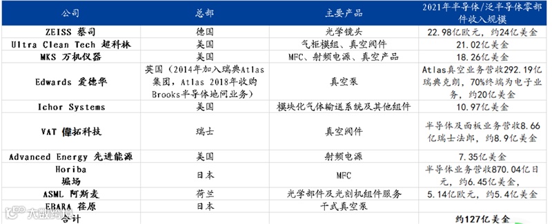 ▲2020 年中国晶圆厂商采购的 8-12 寸晶圆设备前道零部件产品结构