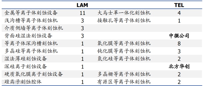 ▲Lam Research、北方华创、中微公司中标长江存储的刻蚀机台种类及数量(台)