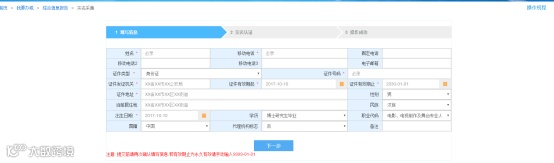 2、录入必录信息后点击“下一步”: