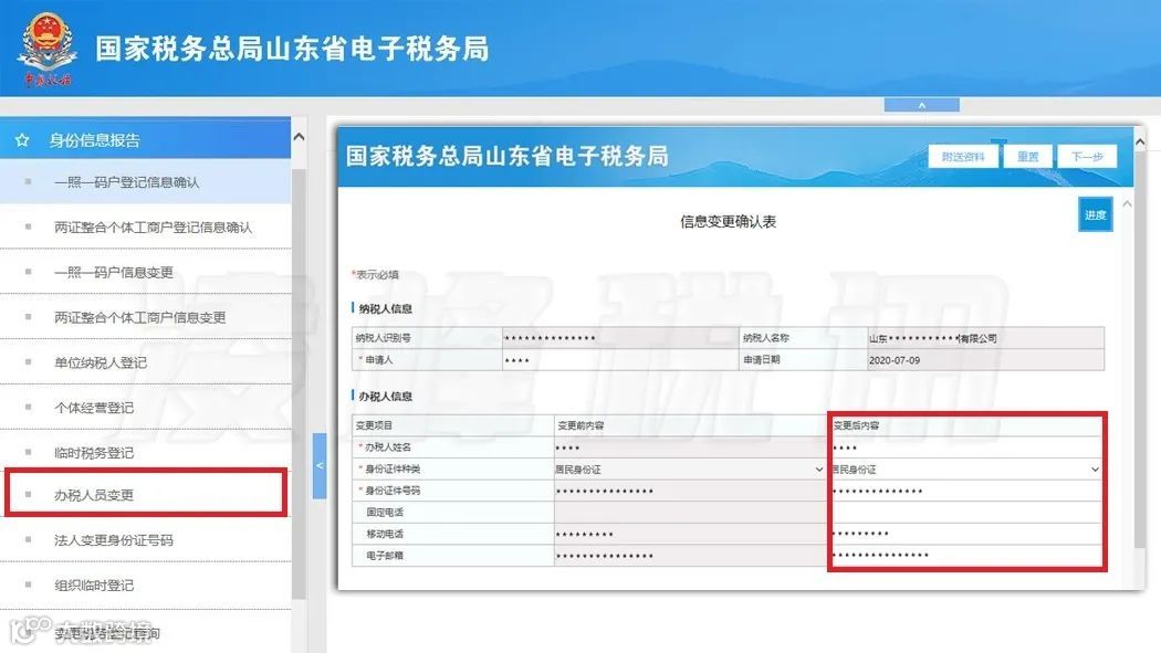 以山东省为例,登录山东省电子税务局,依次点击“我要办税”→“综合信息报告”→“身份信息报告”→“办税人员变更”,办理信息变更。