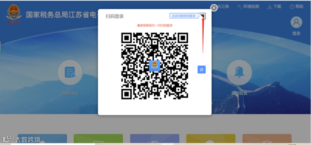 1)打开电子税务局后,在登录主界面点击“点击切换扫码登录”按钮。