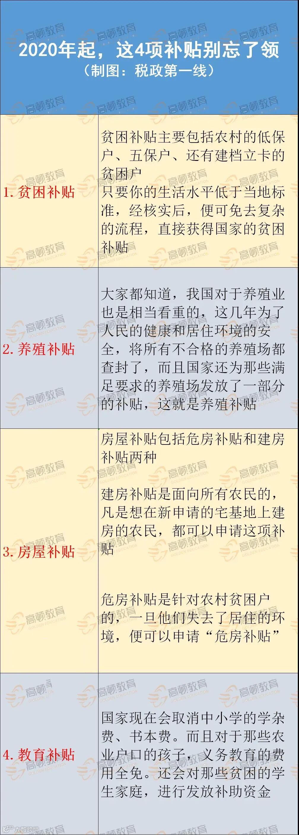此外,2020年起,农村户口的朋友还有以下4项补贴可以领: