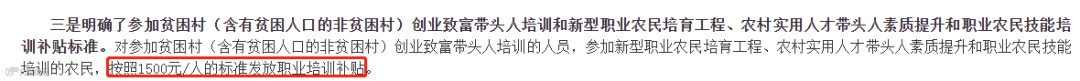 按照1500元/人标准发放职业培训补贴