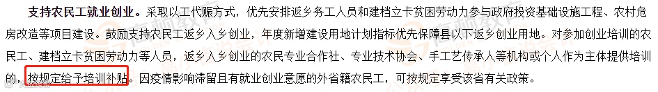 按规定给予培训补贴