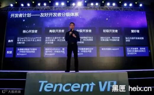 2016腾讯全球合作伙伴大会上,腾讯智能创新业务部负责人田刚透露,腾讯计划是在软件方面为VR开发者提供早期开发原型,即腾讯基础服务SDK和HMD SDK。