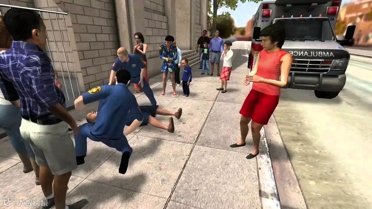 观众的反应都是发自内心的,他们本能地向后退,然后弯下腰观察倒地者的情况,耳边传来的是现场真实而紧张的录音。至少有一名观众紧张得哭了起来,这一点连De la Pena都没料到。相比Facebook上的那个360度视频版本,这个纪录片给观众带来的现场感要强得多。