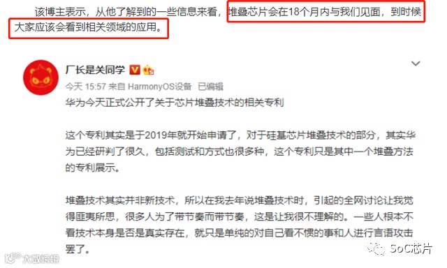 同时,根据某博主的爆料:华为此刻公布芯片的堆叠技术,就意味着