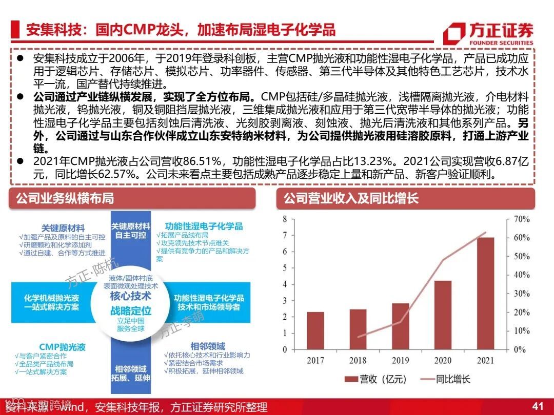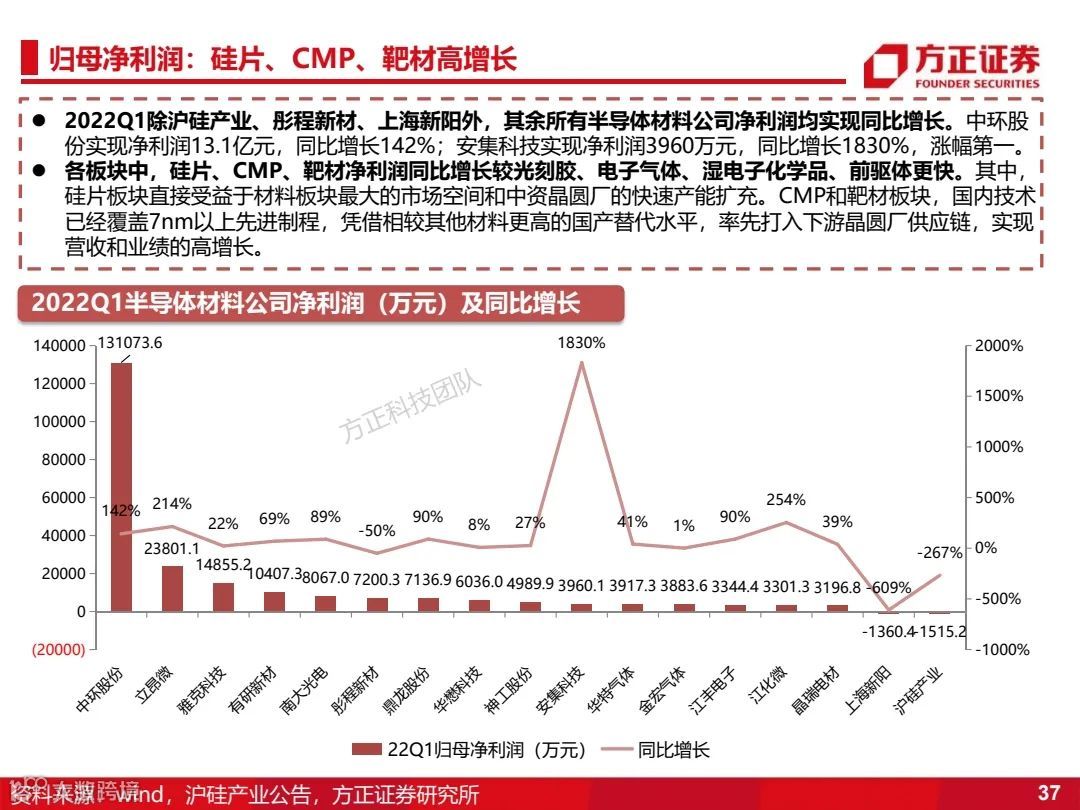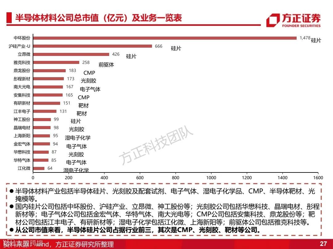 2)半导体材料:中环股份、有研新材、晶瑞电材、沪硅产业、立昂微、神工股份、华懋科技(徐州博康)、鼎龙股份、安集科技、江丰电子、江化微、中晶科技;