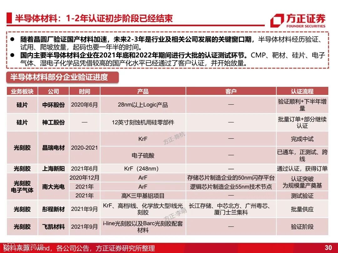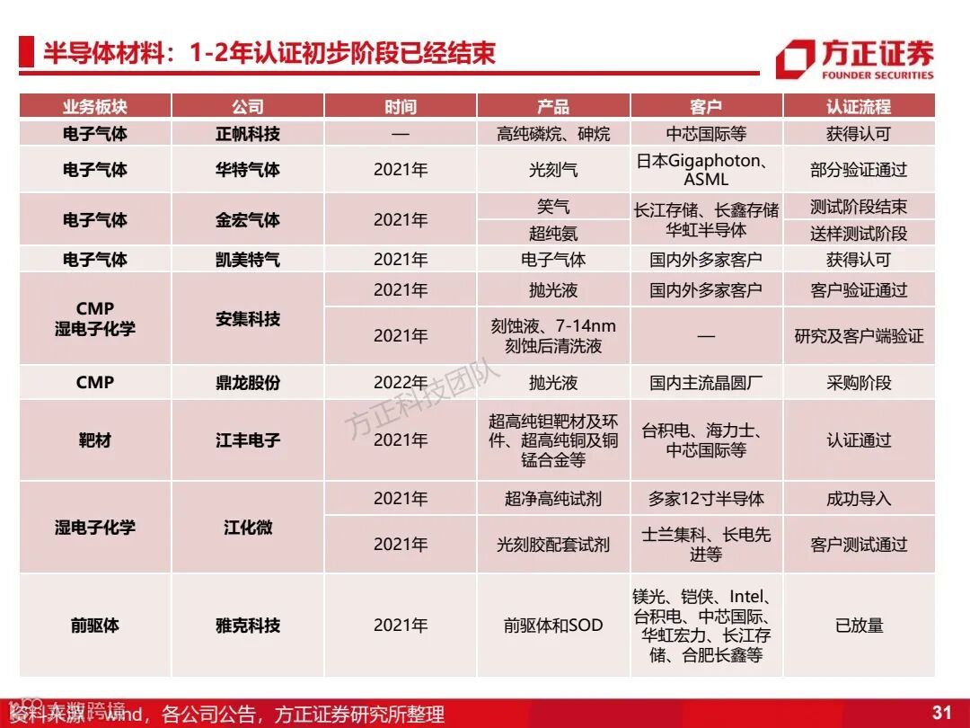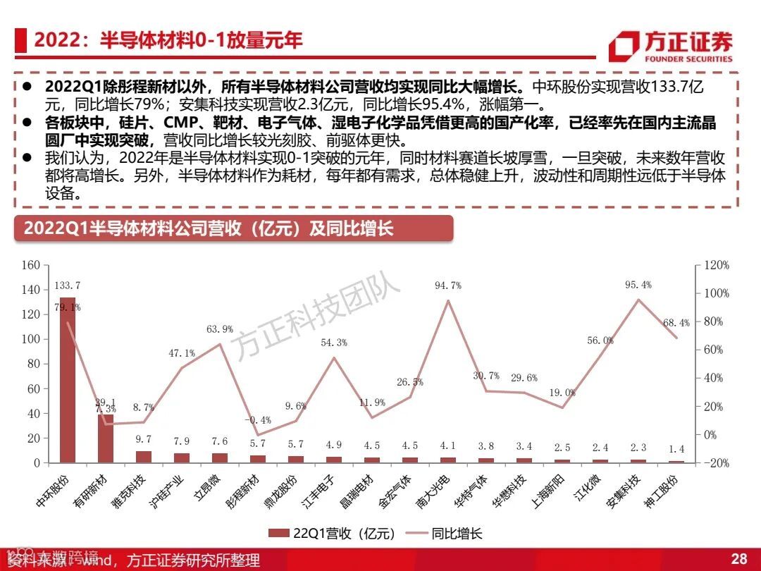 2)芯片材料:将在设备后,接力进行0-1的突破,优先推荐黄光区材料和具备材料上游制备能力的相关公司。