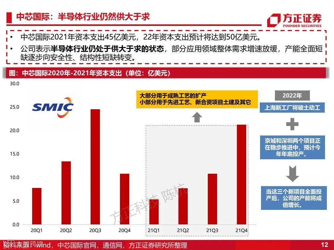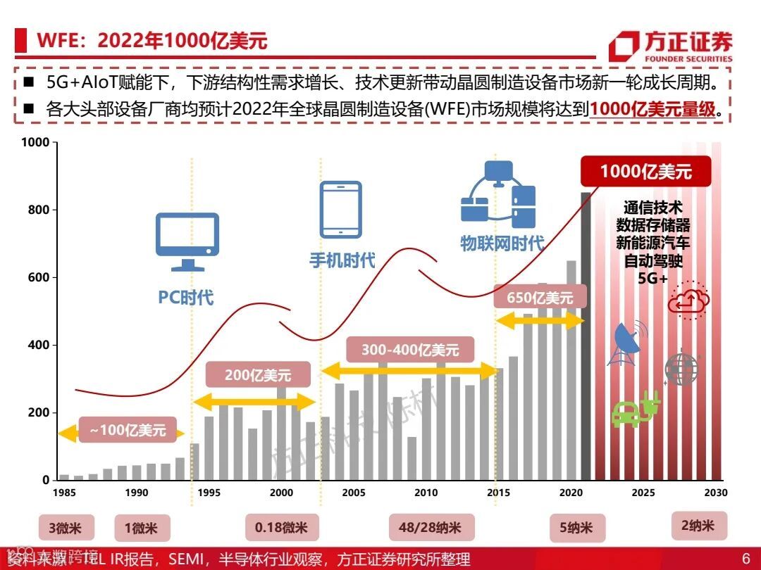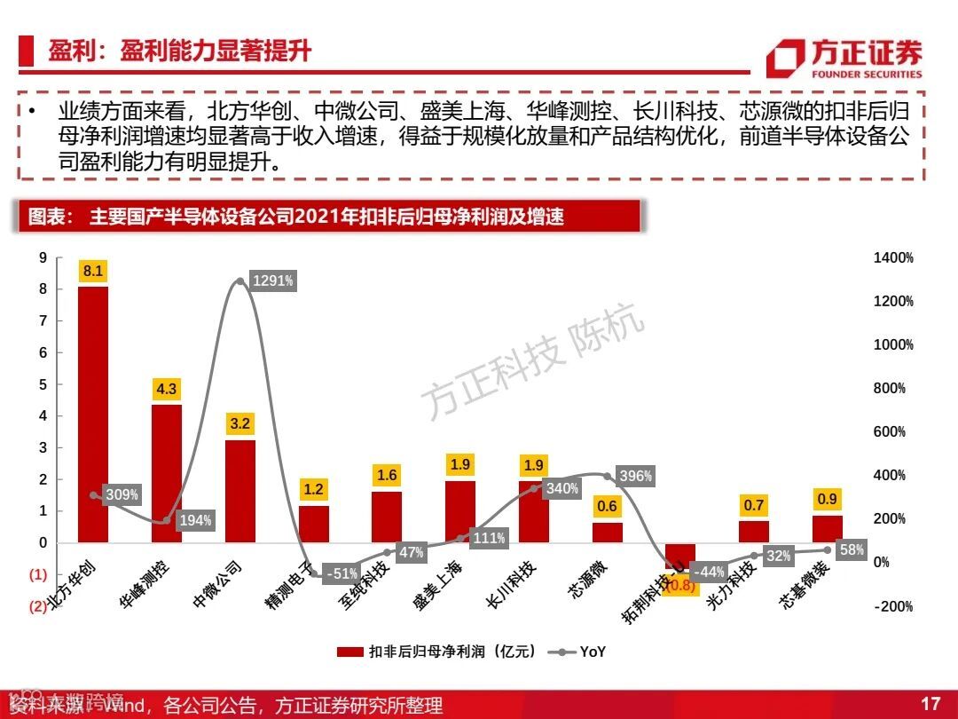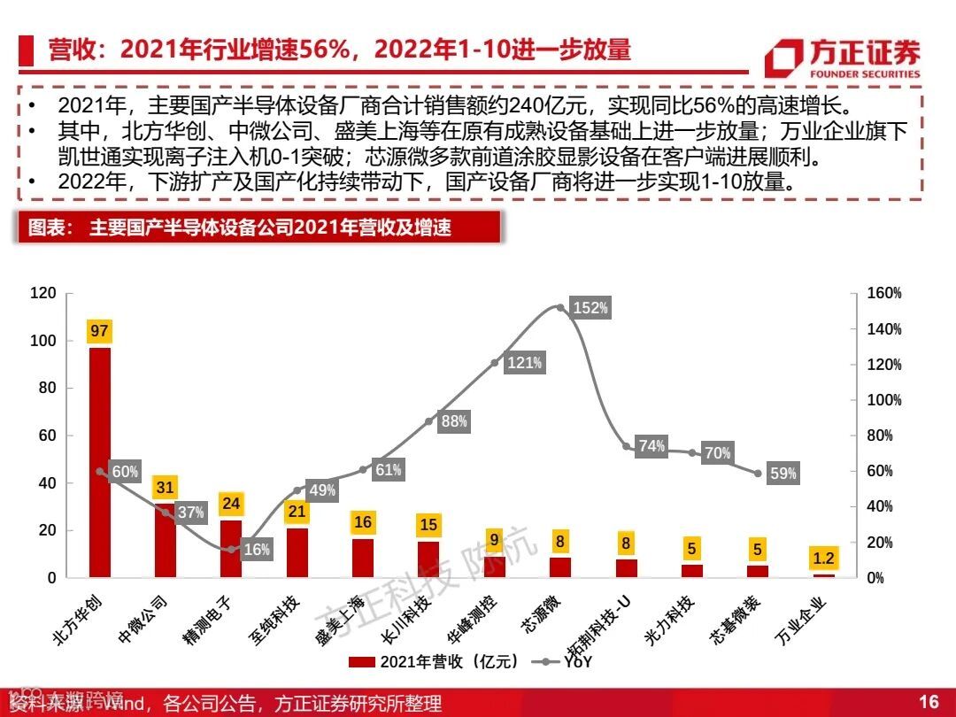 1)半导体设备:将在2022年实现1-10的放量,优先关注成熟工艺国产化设备(130/90/65/40/28nm)。