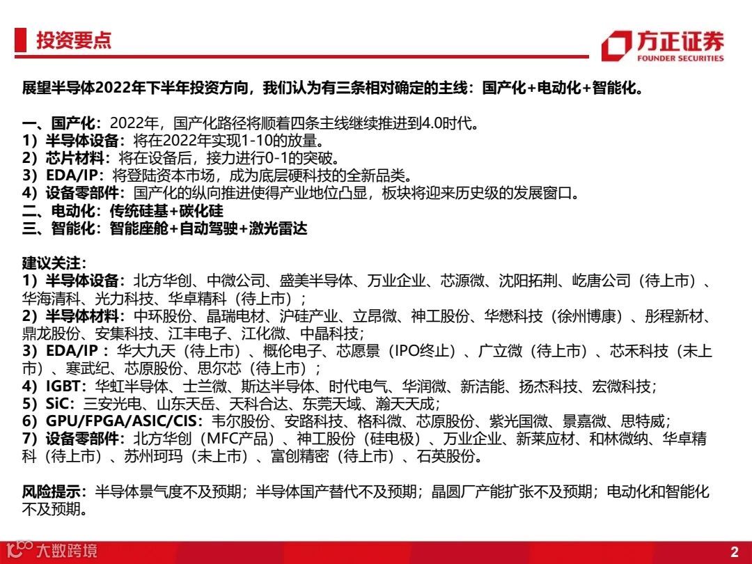 展望半导体2022年投资方向,我们认为有两条相对确定的主线:国产化和电动化。