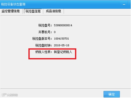 1、税控设备状态查询中可查看纳税人性质是否为转登记纳税人。如下图: