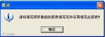 7、申报软件打开报表提示“请将填写顺序靠前的报表填写完毕后再填写此报表!”
