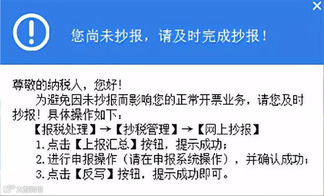 2、启动开票软件时增加“未抄报提醒”:每月15日之前(包括15日),启动开票软件,会自动监测征期抄报情况,若监测到征期未抄报,如下图提示用户进行抄报税。