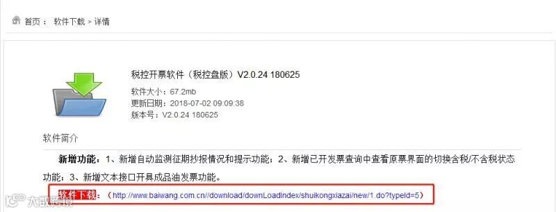 2.点击【软件下载】,选择【税控开票软件(税控盘版)V2.0.24 180625】