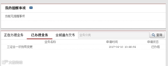 受理完成后,经办人手机将收到短信通知。纳税人可以进入外网点击已办理业务中事项,查询具体受理结果。