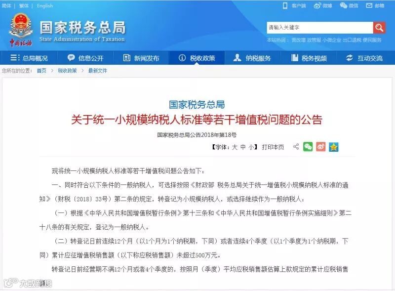 附关于《国家税务总局关于统一小规模纳税人标准等若干增值税问题的公告》的解读,请点击这里“阅读原文”。
