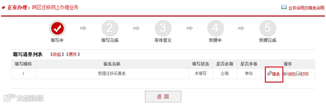 点击“跨区迁移”,选择要办理的业务,进入表单填写界面。