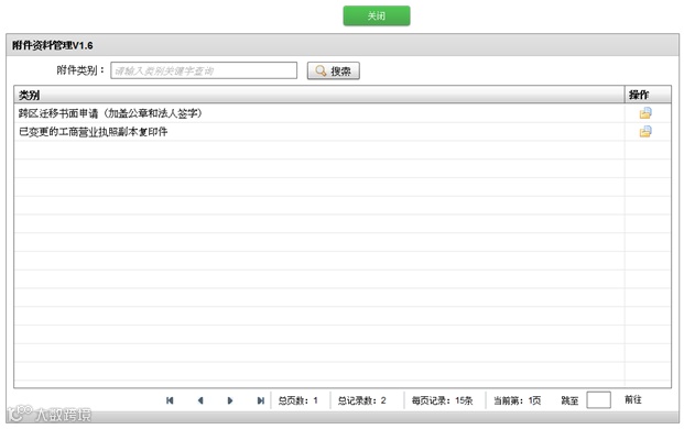 第三步:完成以上操作步骤后,企业点“返回”按钮,在下一个界面中点“关闭”,即完成上传操作,在表单填写页面“附件资料”部分可以看到已经上传的附件清单。