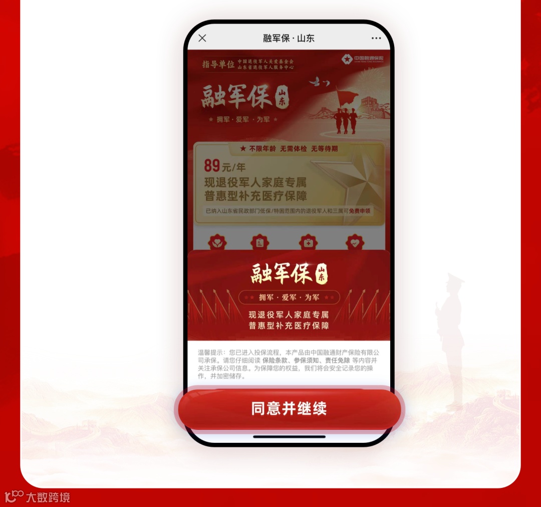 2023年7月5日,由中国退役军人关爱基金会、山东省退役军人服务中心共同指导,央企中国融通保险承保的「现退役军人家庭专属」普惠型补充医疗保障:“融军保·山东” 正式上线!