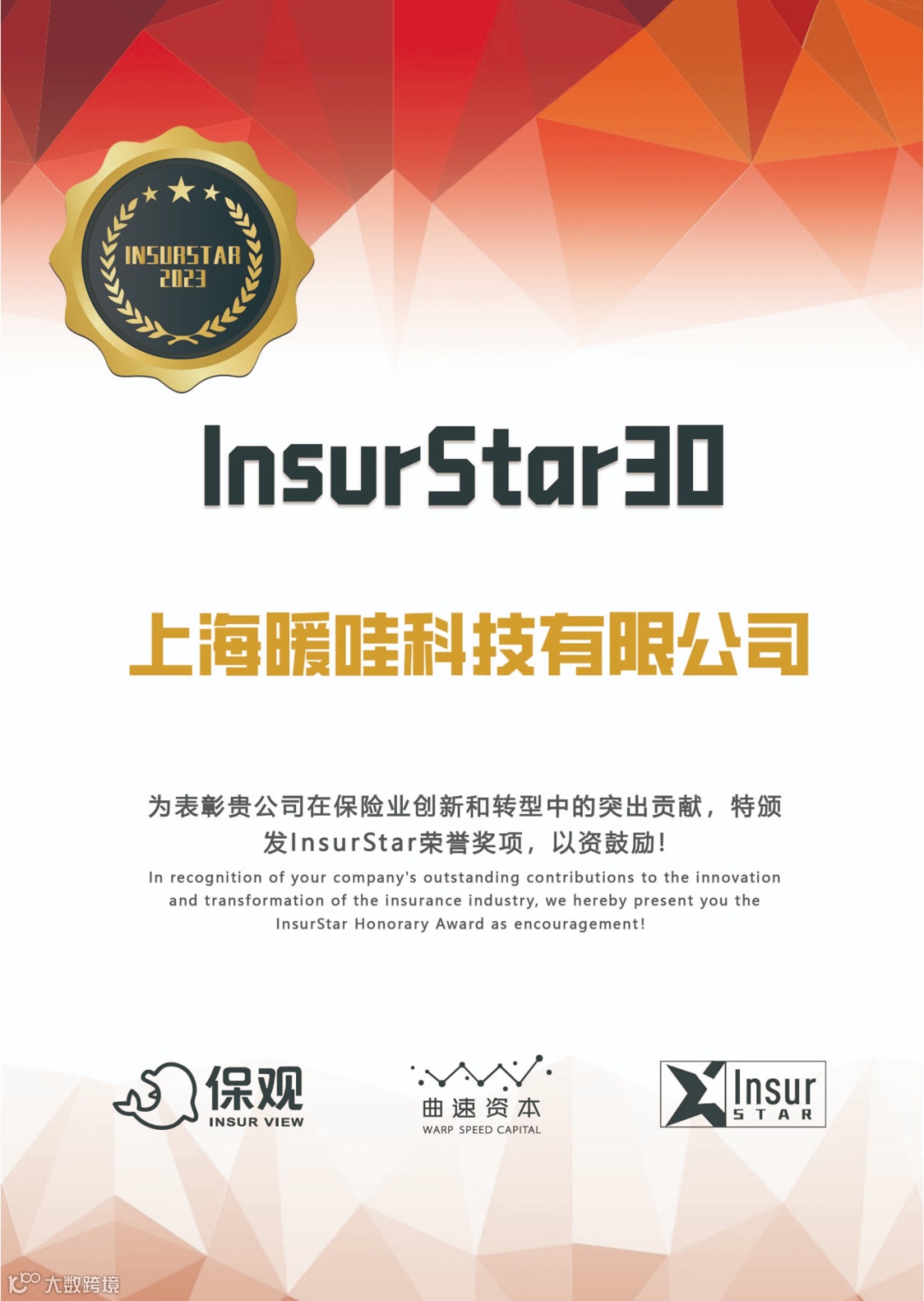 评选活动继续采用专家评选与线上用户投票结合的方式举行。暖哇科技在200多个项目的范畴中脱颖而出,入选InsurStar保险行业榜单,报送的“寿险数字化客户经营解决方案”入选“2023年保观·InsurStar优秀产品与服务保险行业年度评选榜单“,被评为“年度优秀营销技术方案”。