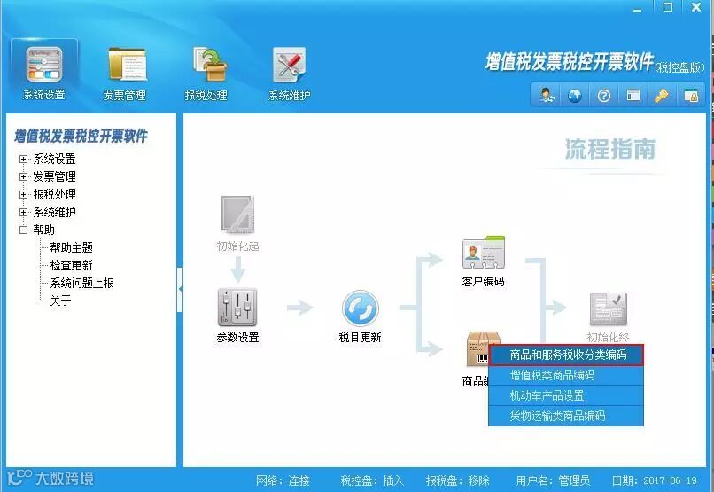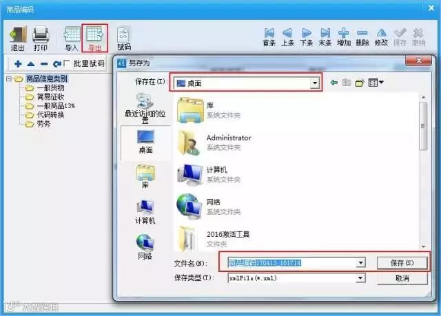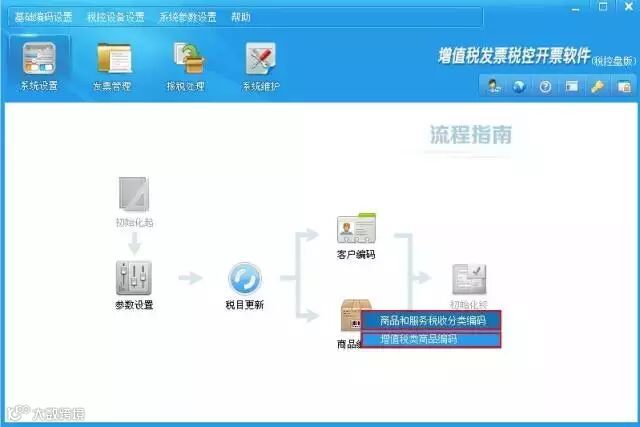 b、打开开票软件,将所备份的客户编码和商品编码文件,点击客户编码或者商品编码进行“导入”,提示导入成功即可。