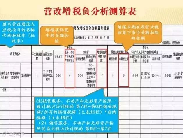 请按照相应的增值税税率和营业税税率可以根据带出的应税项目代码及名称来选择填写。纳税人兼营此次营改增四大行业的应税行为,应分项目填报《测算明细表》,即多项应税行为分行填报对应“应税项目代码及名称”及相关栏次数据。