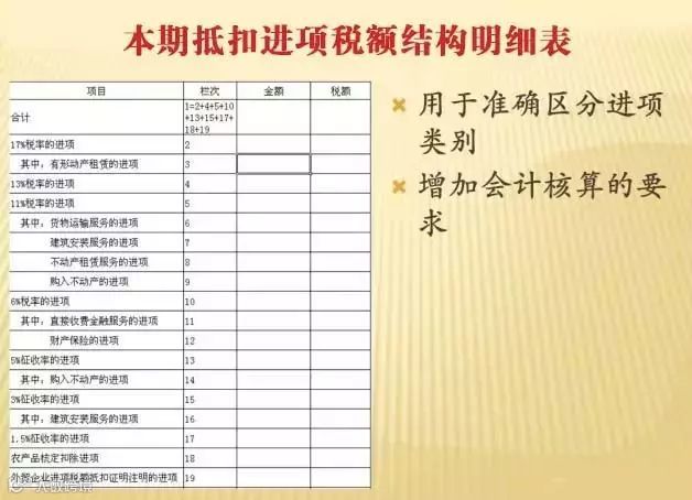 《本期抵扣进项税额结构明细表》反映进项明细,第1栏“税额”列 =《附列资料(二)》(第12栏“税额”列-第10栏“税额”列-第11栏“税额”列)