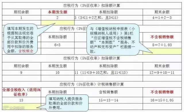 纳税人当期发生的应税项目,按国家统一的原营业税政策规定享受差额扣除政策的,可以填报对应行次第9 列“本期发生额”。如果有差额项目,11列也需要填写差额,与第4列保持一致。