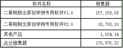 2019年2月,公司销售情况如下,两款嵌入式软件产品销售额分别为157158.08、18793.10,其他销售额为1024.14。