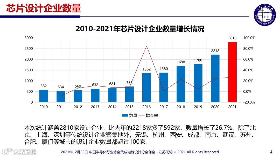【关注】2021年中国芯片设计企业突破2810家!