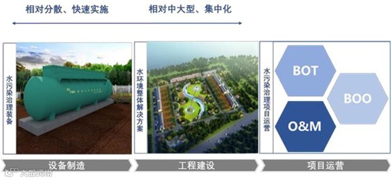 公司系国内先进的创新型水环境治理综合服务商,长期专注于解决生活污水、工业废水处理的痛点、难点。公司以自有核心工艺为支撑,不断整合产品、技术、生产与服务,构建起水污染治理装备、水环境整体解决方案与水污染治理项目运营服务三位一体的业务体系,形成了相对完善的水环境综合治理能力,及以新工艺、新技术开发推广为核心的产业链和以技术创新能力为主导的市场竞争力。公司三大业务的简要情况如图所示: