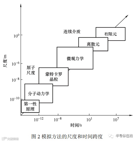 随着封装技术的不断发展,封装材料和结构研究的尺度和时间跨度可能超过 12 个数量级,并且每个级别都涉及不同的领域,如图 2 所示。多尺度建模的最终目标是从第一性原理开始预测材料行为,将信息传递到分子尺度,最终传递到宏观尺度。从“自下而上”的角度来看,多尺度方法应该考虑材料的内在属性。目前的大部分工作都集中于纳米结构材料。