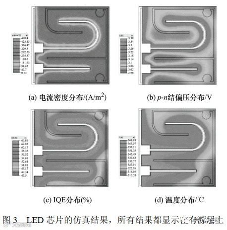率(Internal Quantum Efficiency, IQE)、电流密度和发射光谱与 p-n 结偏压和温度之间的关系,如图 3所示。