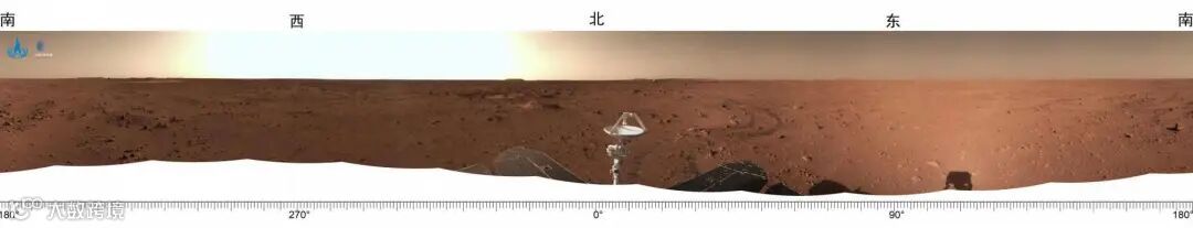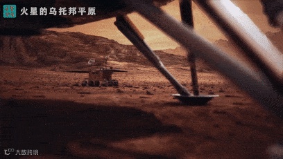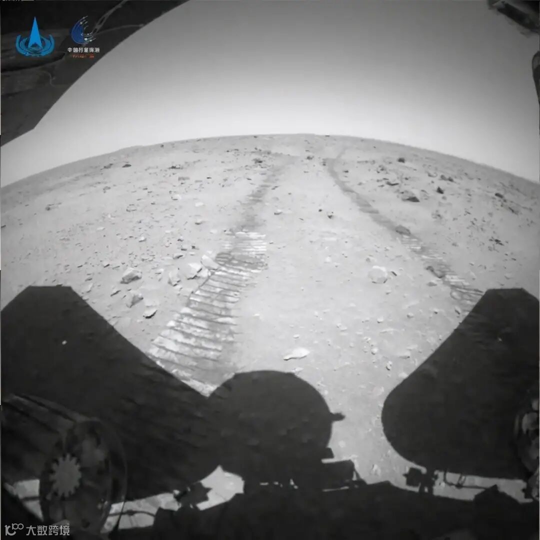 在2021年6月1日,祝融号火星车释放的分离相机还拍摄到了祝融号火星车与着陆平台的合照,拍摄到祝融号火星车后退、原地转弯的过程画面,这是我们人类第一次获取火星车在火星表面移动过程的影像。在2021年6月16日,祝融号开展了全局环境感知,拍摄到了祝融号火星车在火星表面行驶时留下的车辙。