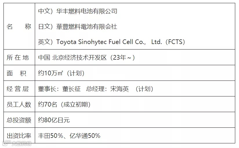 去年8月,亿华通、丰田及其他4家汽车厂商共同成立了“联合燃料电池系统研发(北京)有限公司”(以下简称FCRD),此次新公司FCTS将生产及销售FCRD开发的燃料电池系统,并于2021年成立,总投资额约为80亿日元,亿华通和丰田各出资50%。