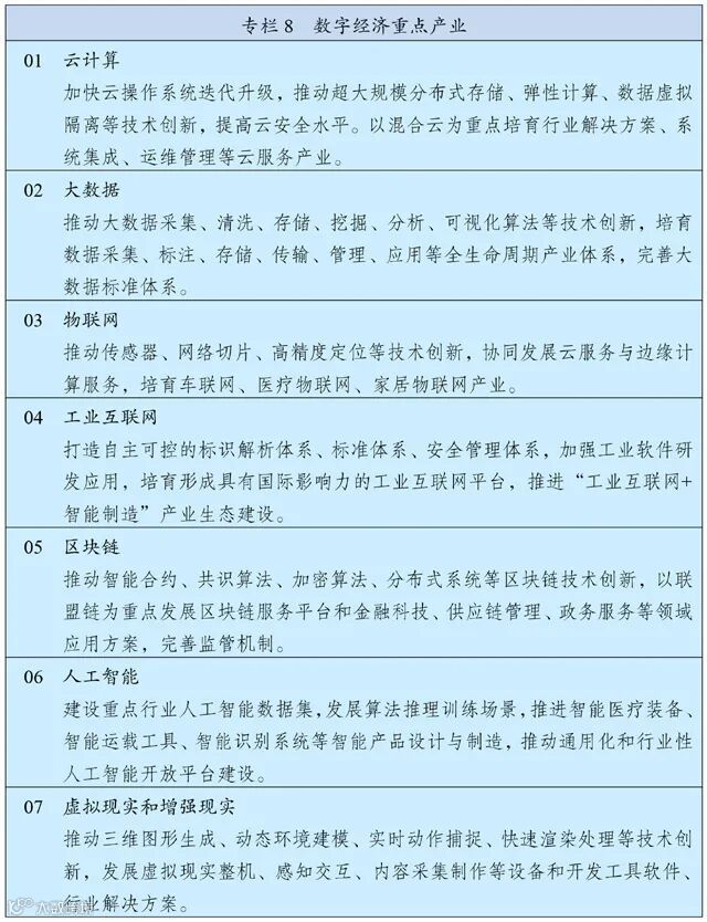 培育壮大人工智能、大数据、区块链、云计算、网络安全等新兴数字产业,提升通信设备、核心电子元器件、关键软件等产业水平; -