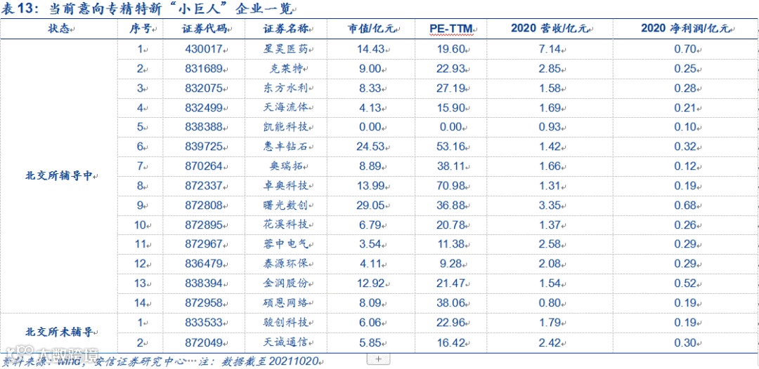 再次,已表达了北交所上市意向但目前还未正式挂牌的专精特新公司,随着北交所的开市临近其也将受益。