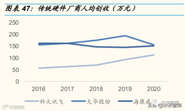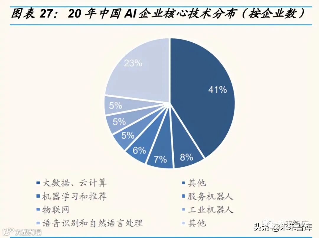 AI 行业关注重点及催化因素经过几十年发展,AI 技术公司、新算法层出不穷,图像识别、语音识别等 技术红利快速释放,但过去十年主要仍基于深度学习算法。行业生态体系 更为明晰,单技术同质化明显,竞争力主要体现在落地场景的丰富程度和 具体细节,且多模能力组合、赋能其他行业时 AI 技术与专业知识的结合成 为趋势。本文主要总结了三类 AI 技术商业模式、四类主要行业参与者,建 议关注以下方面:1)收入构成及确认方式:由于 AI 使用场景丰富,若是集成类政企项目, 单个厂商较难具备完整能力,通常变为硬件销售为主,软件收入占比 低,拉低整体盈利水平,且收入进度受客户项目验收节奏影响,降低 运营指标,影响现金流;2)AI 赋能行业还是行业反哺 AI:以海康威视为代表的传统硬件公司已蝉 联八年安防行业市场份额第一,对下游客户的需求具备深刻洞察,且 有较强供应链管理能力,在此基础上发展 AI 能力市场目标更为明确;类似如字节跳动的 AI 能力主要基于今日头条 App、抖音生态等自身业 务需求,再做技术外溢;阿里的强项主要也与电商业务和商品推荐有 关。纯粹技术厂商需对市场需求和客户使用场景有足够的经验积淀, 才能形成差异化竞争优势。3)标准化程度高、可规模复制的产品可解盈利之困:当前 AI 独角兽厂商 所接定制化、私有化的项目订单较多,无法形成规模化复制优势,导 致人均效益偏低。以科大讯飞为例,To C 产品高度标准化,可随市场 份额提升、学习机等产品出货量、学智网订阅量增加而摊薄制造成本 与研发、销售费用投入,提升盈利水平。4)数据是 AI 发展重中之重:人工智能三要素算法、算力、数据中毫无疑 问数据最重要,当前算法同质化严重,算力过剩,数据量大却精细度 不足。大数据、数据仓库、数据分析相关公司或成为投资机会,建议 关注数据处理公司龙头明略科技。5)人员成本下降或迎来行业拐点:AI 市场水大鱼大,随着各个行业场景 落地,市场对 AI认知更清晰,可选的供应商范围更多。当前 AI 行业商 业模式类似咨询公司,未来人才供给增加,一级市场泡沫破裂后人员 成本下降或许带来利润水平会上升,给行业带来结构性变化。