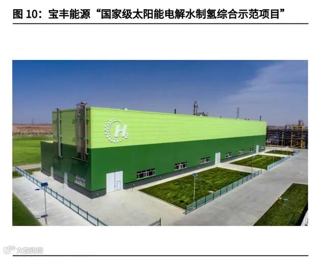 (3)2021 年 4 月 20 日,由宝丰能源组织实施的“国家级太阳能电解水制氢综 合示范项目”在宁夏正式投产,包括 20 万千瓦光伏发电装置和产能为 2 万标方 /小时的电解水制氢装置,是目前全球单场规模最大、单台产能最大的电解水制 氢项目。公司计划用 20 年