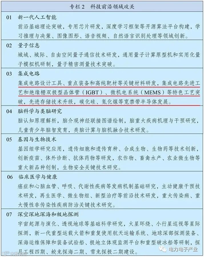 《中华人民共和国国民经济和社会发展第十四个五年规划和2035年远景目标纲要》(以下简称“十四五”规划纲要)日前发布,多处重要内容涉及科技前沿领域,其中明确提出,加强原创性引领性科技攻关 支持IGBT发展。
