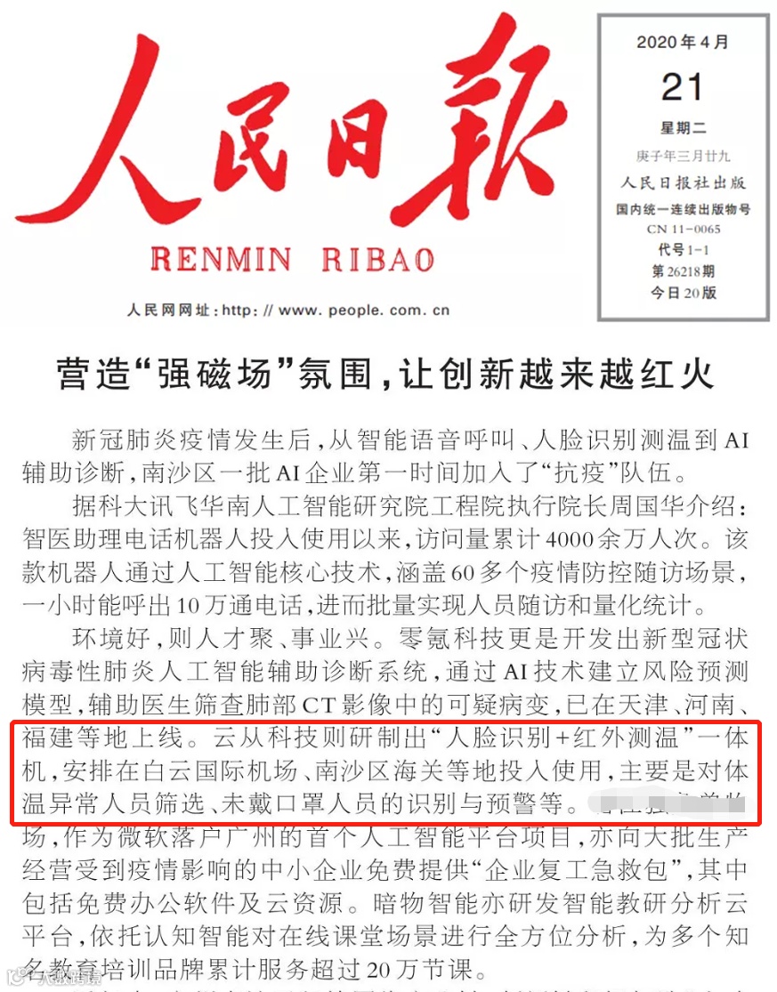 点击右边蓝字查看:《人民日报再次点赞云从科技:营造“强磁场”氛围,让创新越来越红火》