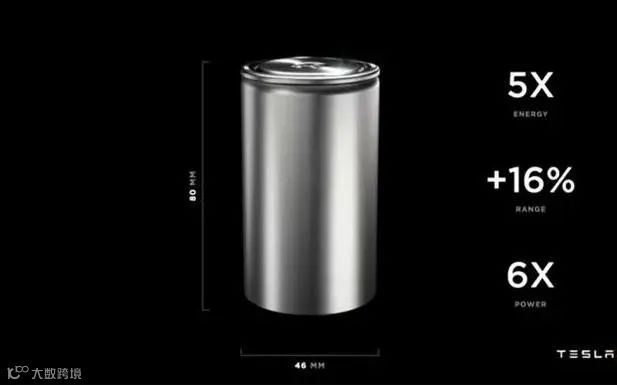 为80mm,相比前代2170电池大幅增加,这意味着它将会有更大的存储容量。据悉,这个新电池的单体容量提升五倍,内部还采用了无极耳设计,有助于降低内阻,减少发热,从而为车辆带来更优秀的能耗表现以及充电性能。