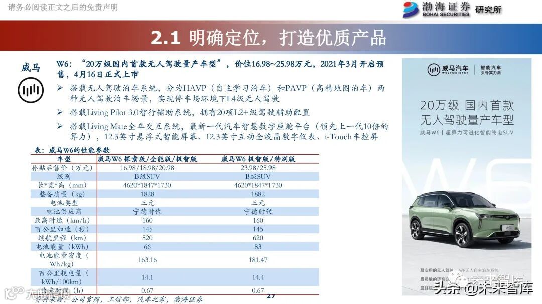 2021年4月16日威马W6上市并交付,此后按照每年上市一款新车型的速度,预计2025年交付量将达19.0万辆。