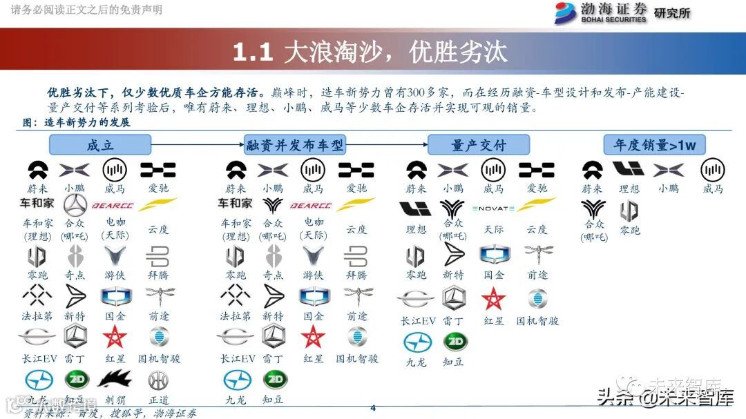-车型设计和发布-产能建设- 量产交付等系列考验后,唯有蔚来、理想、小鹏、威马等少数车企存活并实现可观的销量。