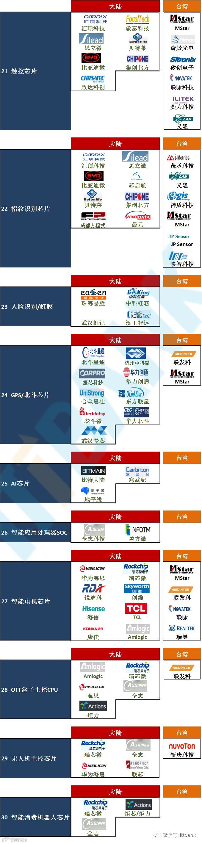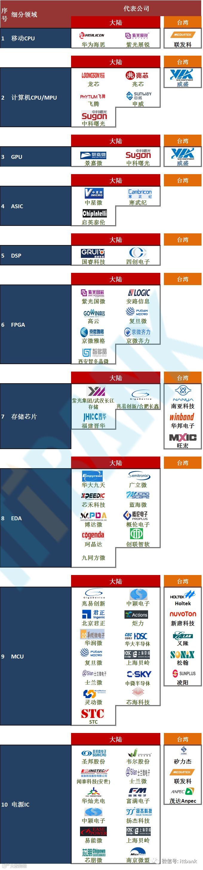 【关注】国产芯片70个细分领域龙头代表企业!