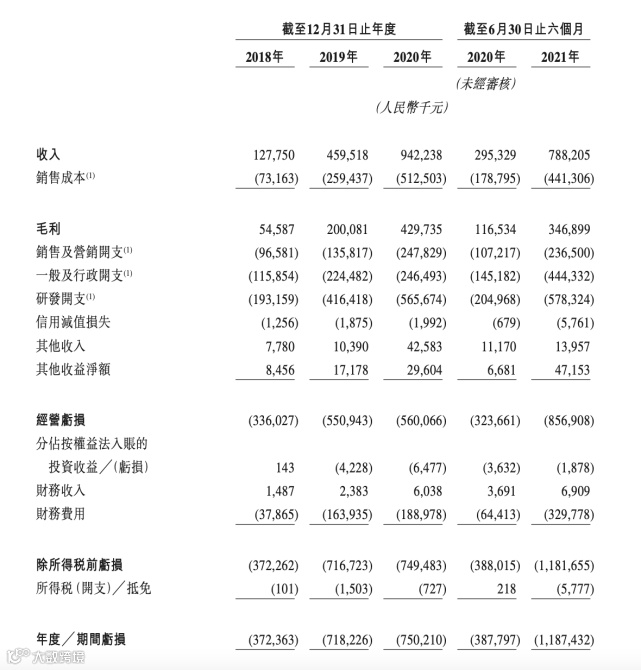 招股书显示,其先知平台及应用产品产生的收入在2018年、2019年及2020年分别为523万元、2.54亿元、6.19亿元;2021年上半年为3.76亿元,较2020年上半年同比增长91.5%。此外,“应用开发及其他服务”收入也占据一定的比重,该业务是指帮助客户在先知平台上开发定制化的人工智能应用。